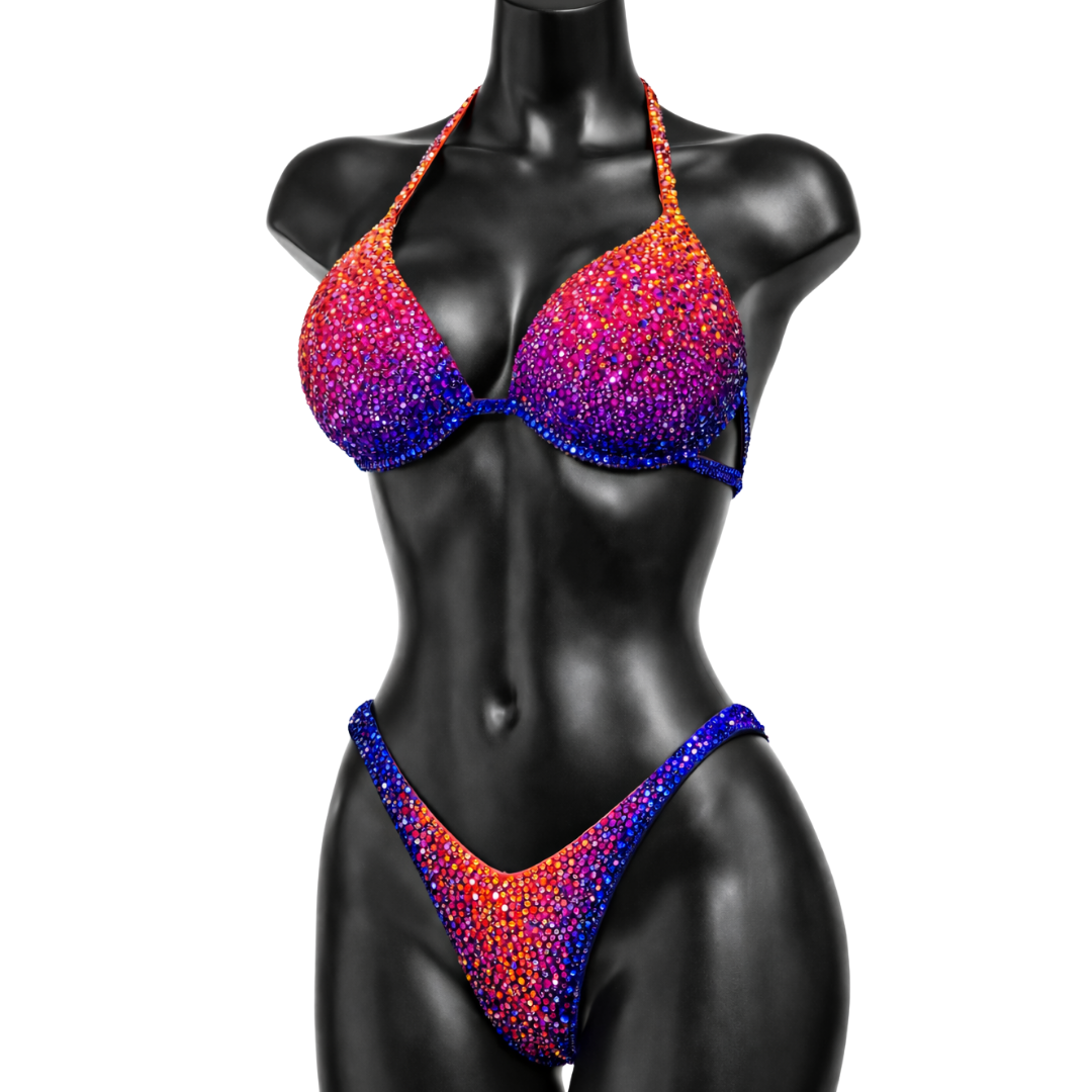 Electric Sunset IFBB Competition Bikini - Blue/ Purple/ Pink/ Orange