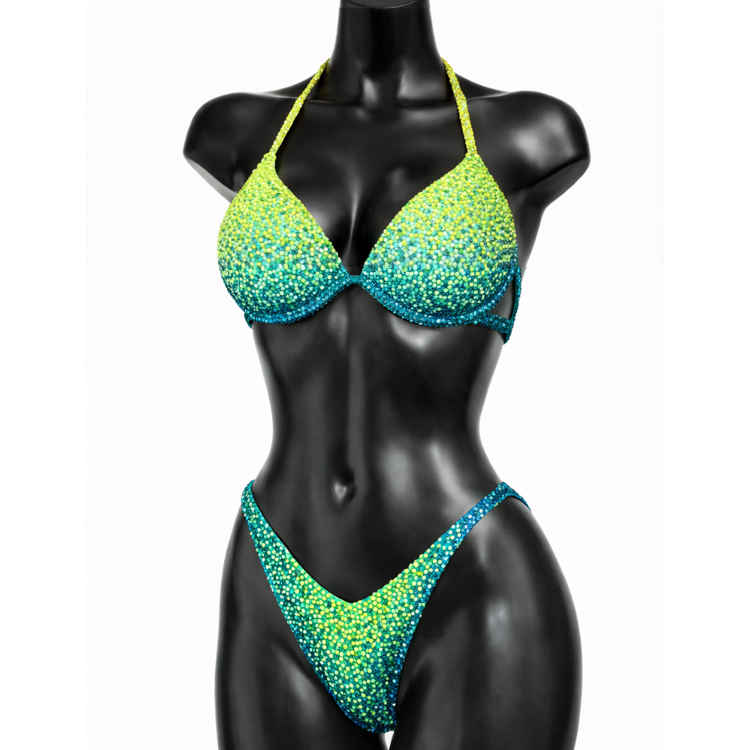 Neon Lime IFBB Competition Bikini - Yellow/ Green/ Teal