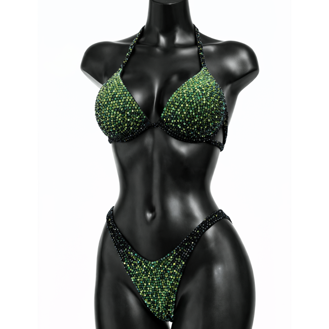 Peridot Radiance IFBB Competition Bikini - Black/ Green